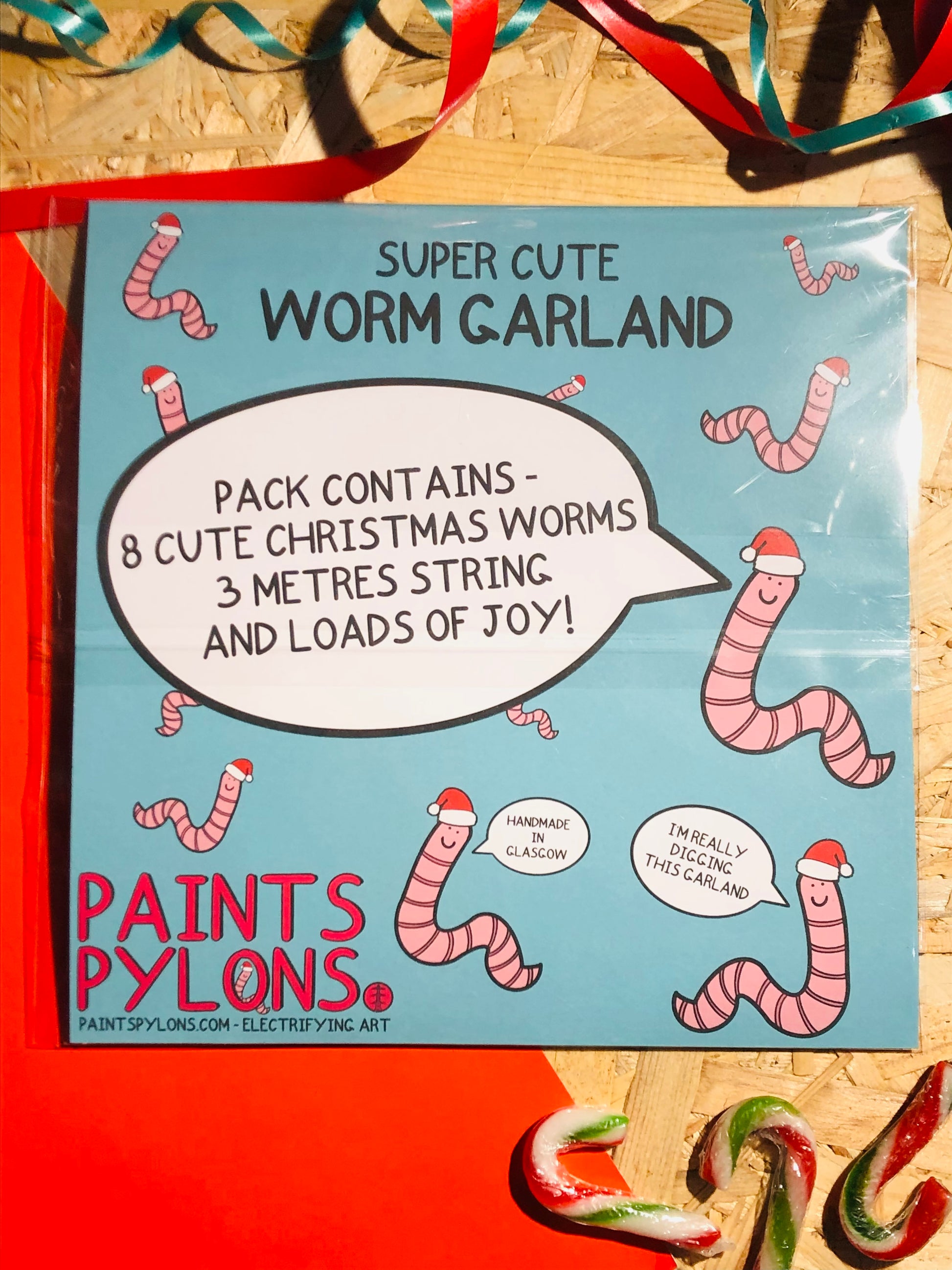 Pack includes 8 Christmas worm garlands