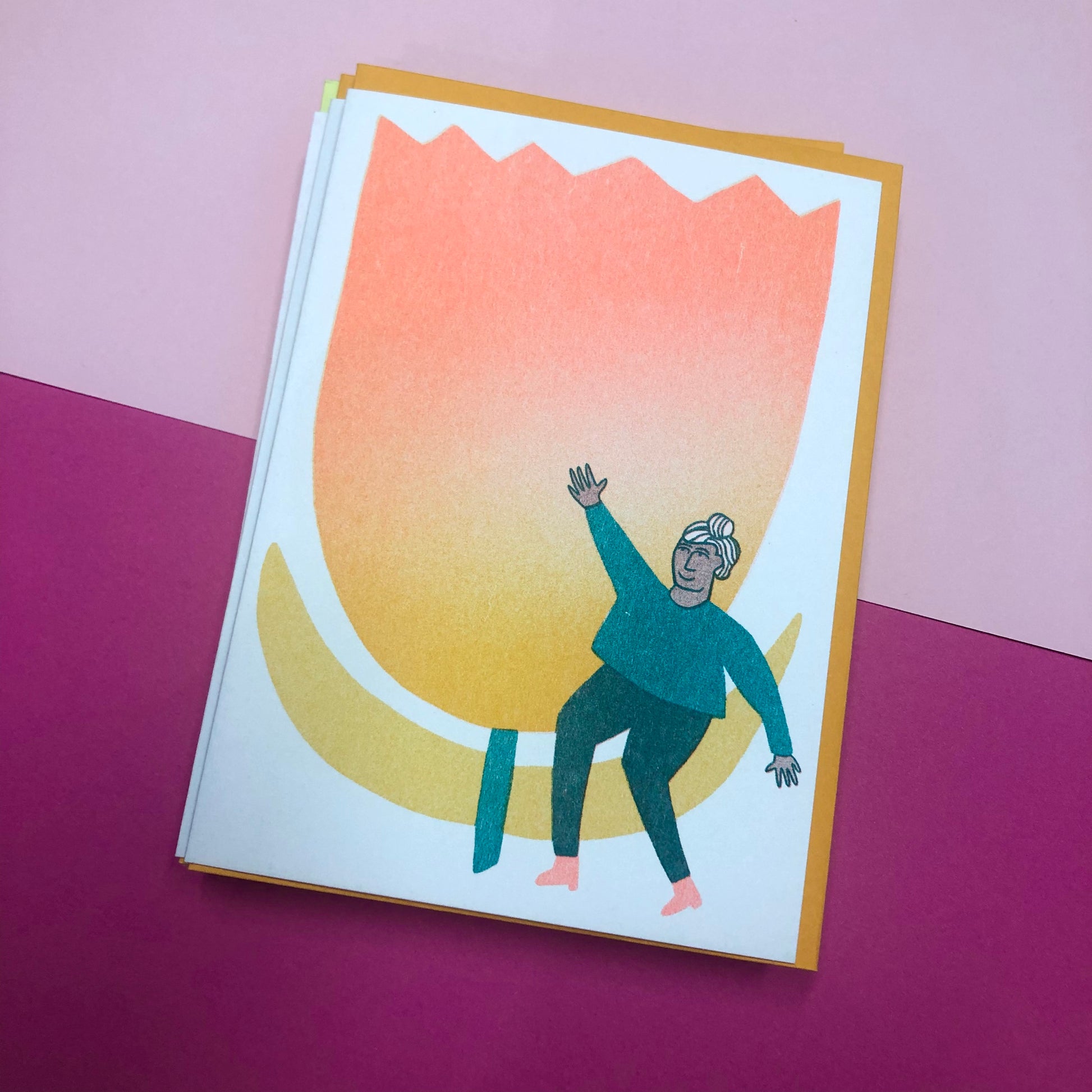 Handmade A6 (14.8cm x 10.5cm) risograph greeting card + match envelope