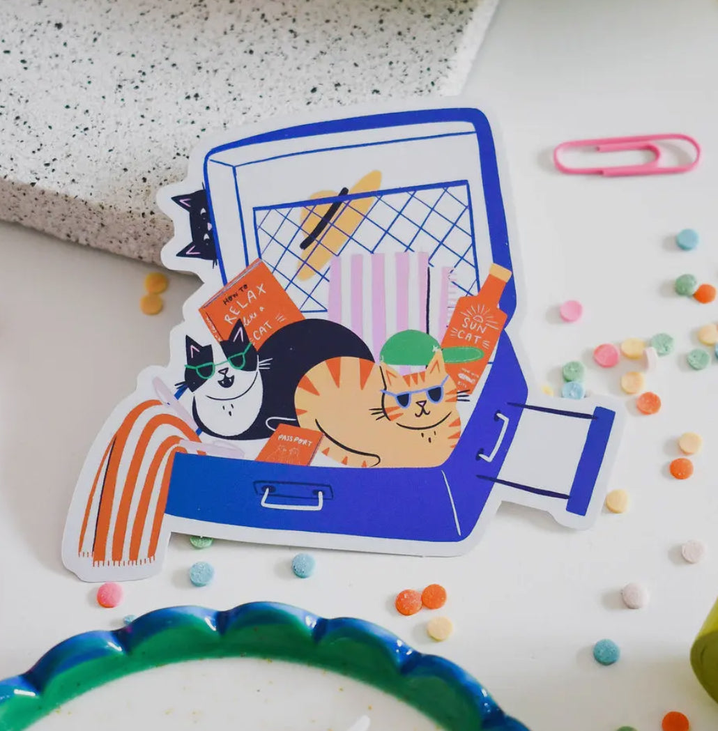 Suitcase Cats Holographic Vinyl Sticker